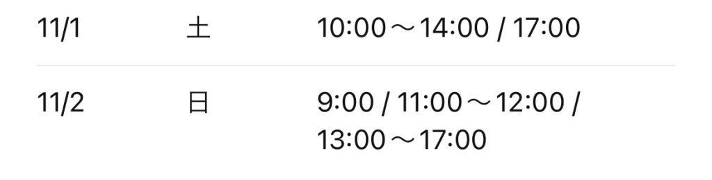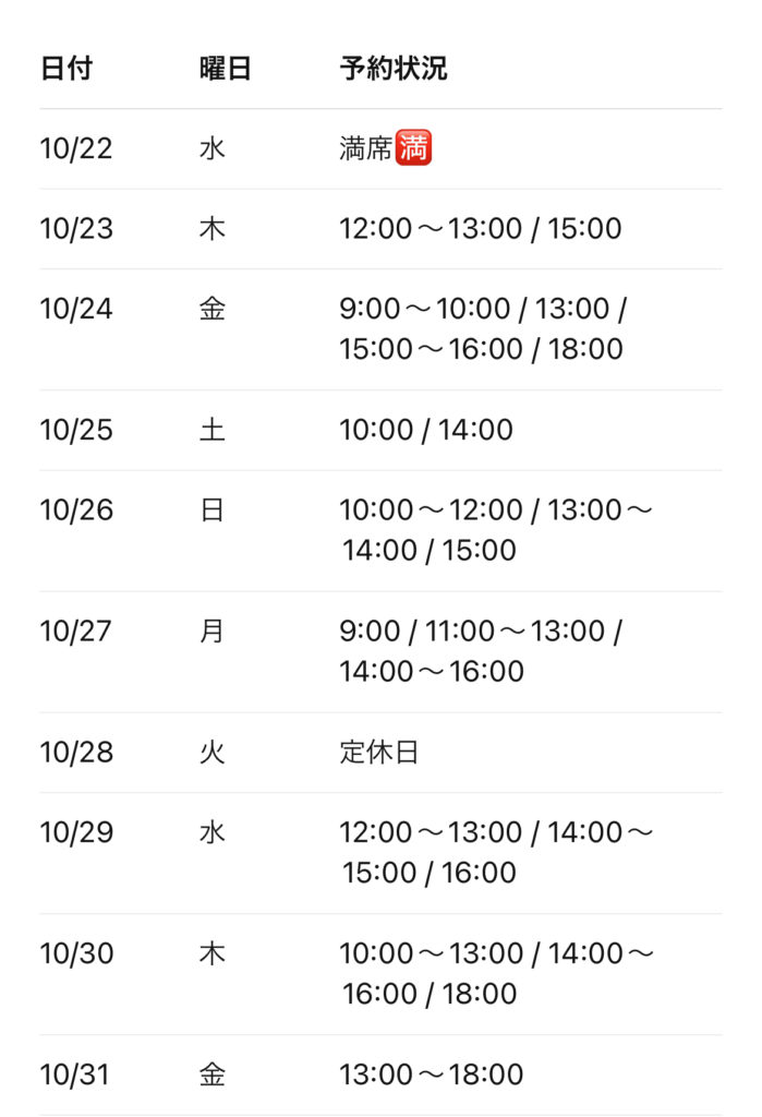 🌿Ulo美容室 予約状況(10月22日〜11月6日)