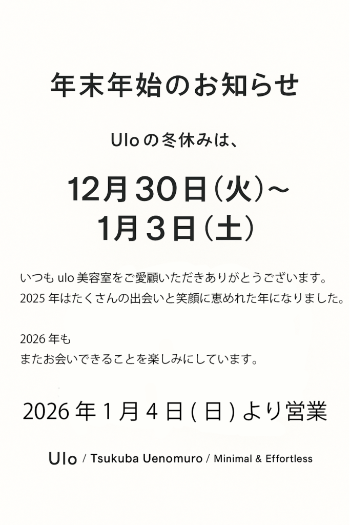いつもulo美容室をご愛顧いただき、ありがとうございます。
