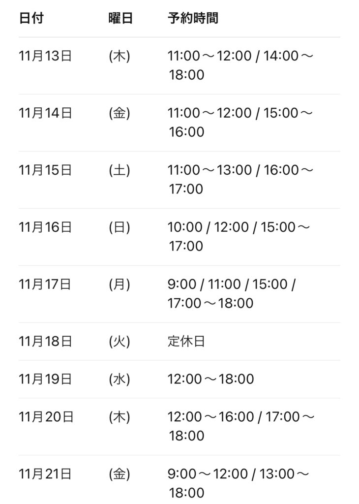 🗓 Ulo美容室 予約状況