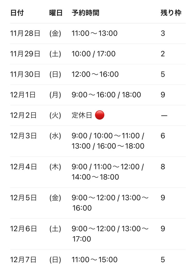 🗓 Ulo美容室 予約状況