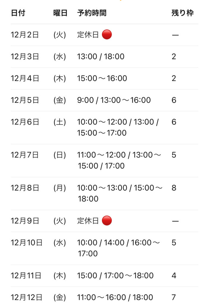 🗓 Ulo美容室 予約状況